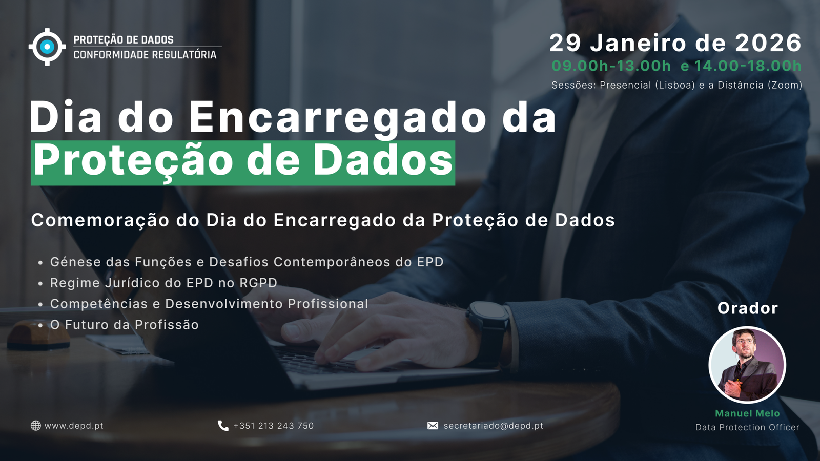 Os dois eventos – Dia Europeu da Proteção de Dados (28 de janeiro) e Dia do Encarregado da Proteção de Dados (29 de janeiro) – foram concebidos como uma experiência de formação integrada e complementar. Enquanto o primeiro se foca no panorama regulatório e nos desafios macro da proteção de dados na União Europeia, o segundo concentra-se especificamente no exercício profissional das funções de EPD no contexto nacional. Os participantes que frequentem ambos os dias beneficiarão de uma perspetiva completa e articulada, abrangendo tanto o enquadramento regulatório como a dimensão prática e profissional da função.